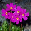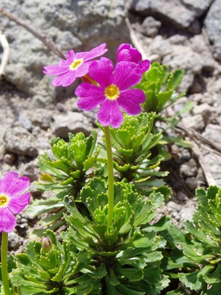 Scientific Name: Primula suffrutescensCommon Name: Sierra Primrose Family: Primrose Color: Bright Pink with a Yellow center. Description: Flowers grow from a basal rosette of toothed, spoon-shaped leaves and cluster atop a leafless stem. The five heart-shaped petals of each flower unite in a yellow tube. Habitat: Moist, rocky slopes and ledges. Comments: These cheery, erect flowers often face north. Particularly wet seasons can produce alluring swaths of bright pink. The genus name, "primula" means "first" and refers to the flower's early blooming cycle. ![]() ![]() ![]() |